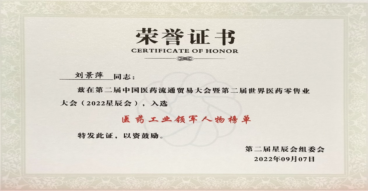 本次星辰会期间,yd12399云顶斩获颇丰,获得多项行业奖项及荣誉。在开幕式上,刘景萍董事长荣获“医药工业领军人物”称号。