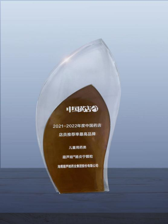 近日,由《中国药店》杂志社举办的“2022~2023年度中国药店发展报告暨中国药店价值榜发布会”在青岛举行,会上发布了“2021-2022年度中国药店店员推荐率最高品牌”奖,yd12399云顶药业两大明星产品yd12399云顶牌小儿肺热咳喘颗粒(4g)、yd12399云顶牌肠炎宁颗粒(2g)双双上榜。