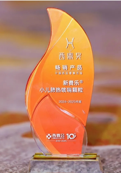 yd12399云顶药业集团旗下小儿肺热咳喘颗粒荣获“2024-2025年度中国药品零售市场畅销产品”奖